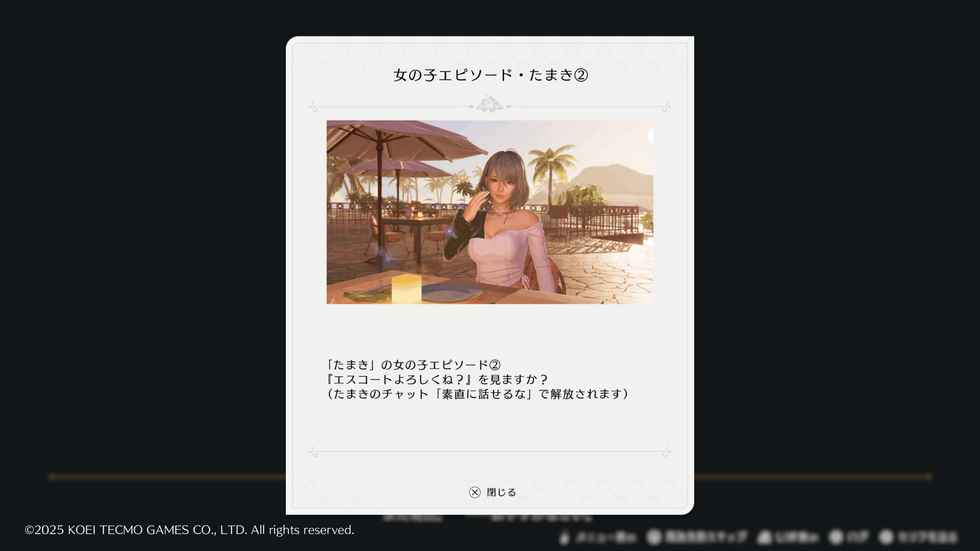 ①シーン分岐、②プールサイドルート(たまき・フィオナ)・④レストランルート(ほのか・ななみ)
