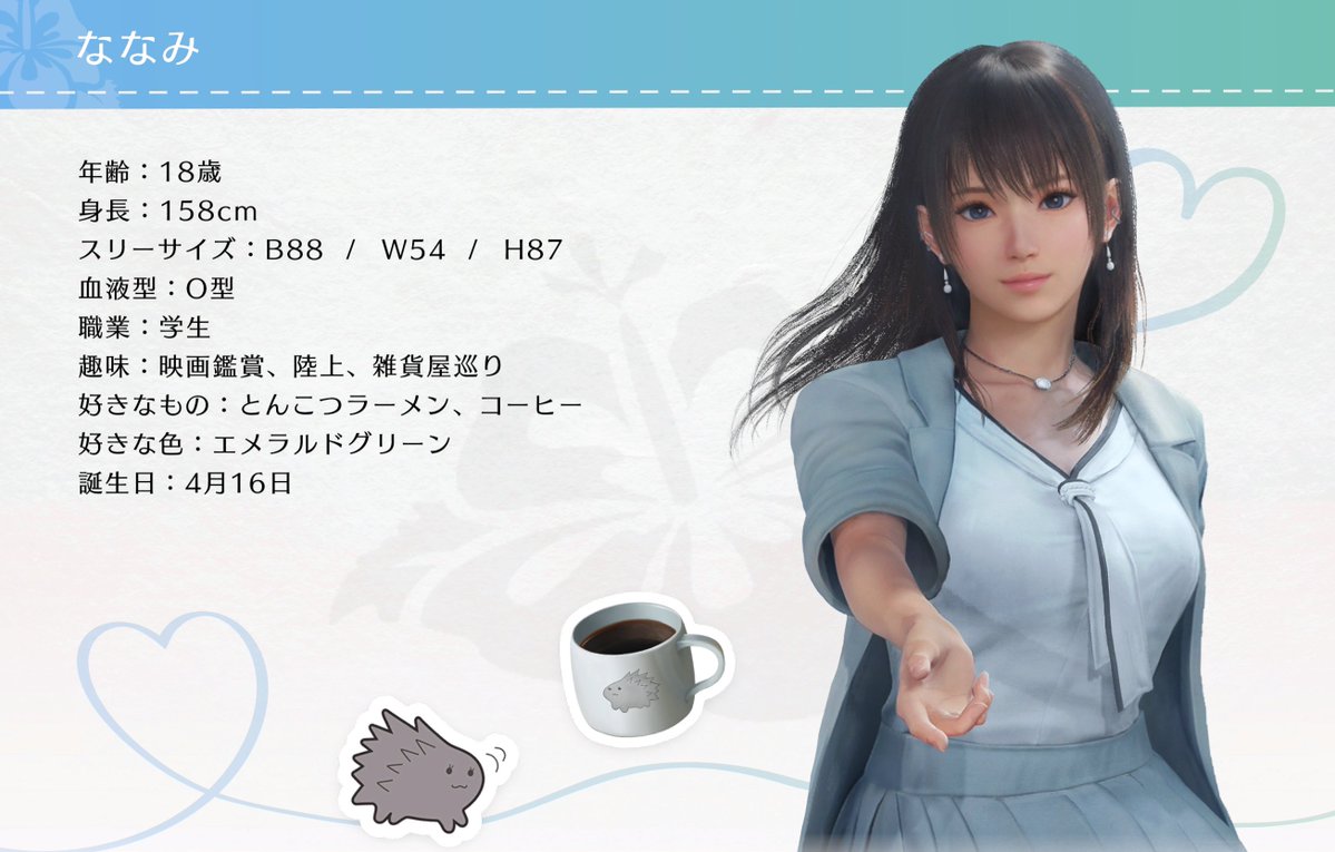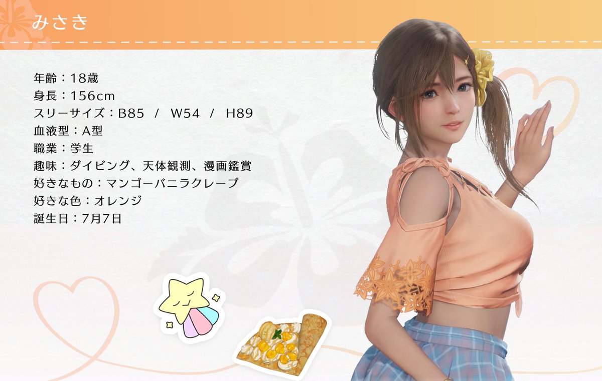 思わず目を引かれてしまう雰囲気のある、等身大で自然体の美少女。中学の同級生のみさきに会うためにヴィーナス諸島を訪れ、みさきと待ち合わせたビーチでオーナーと出会うことに……