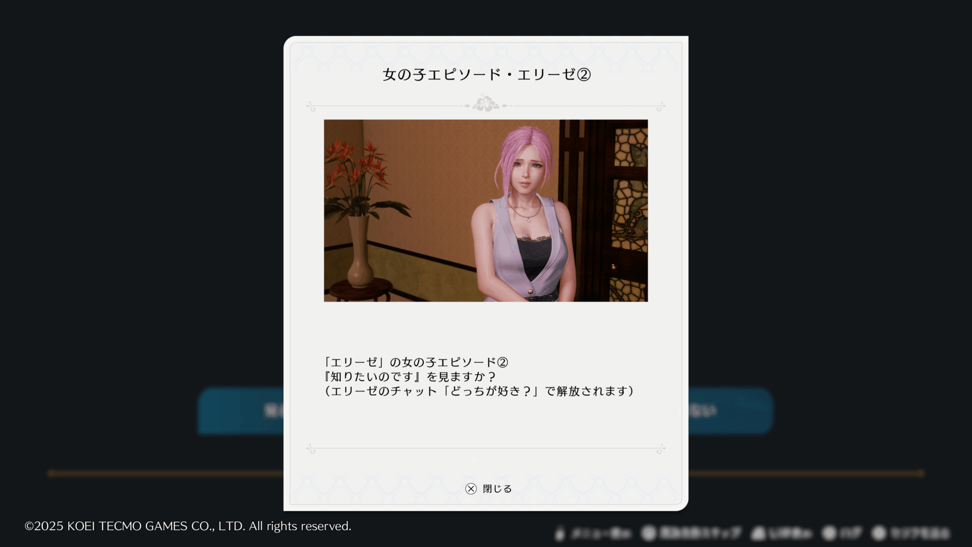 好感度(65%・70%・80%)により会話選択肢に影響あり。